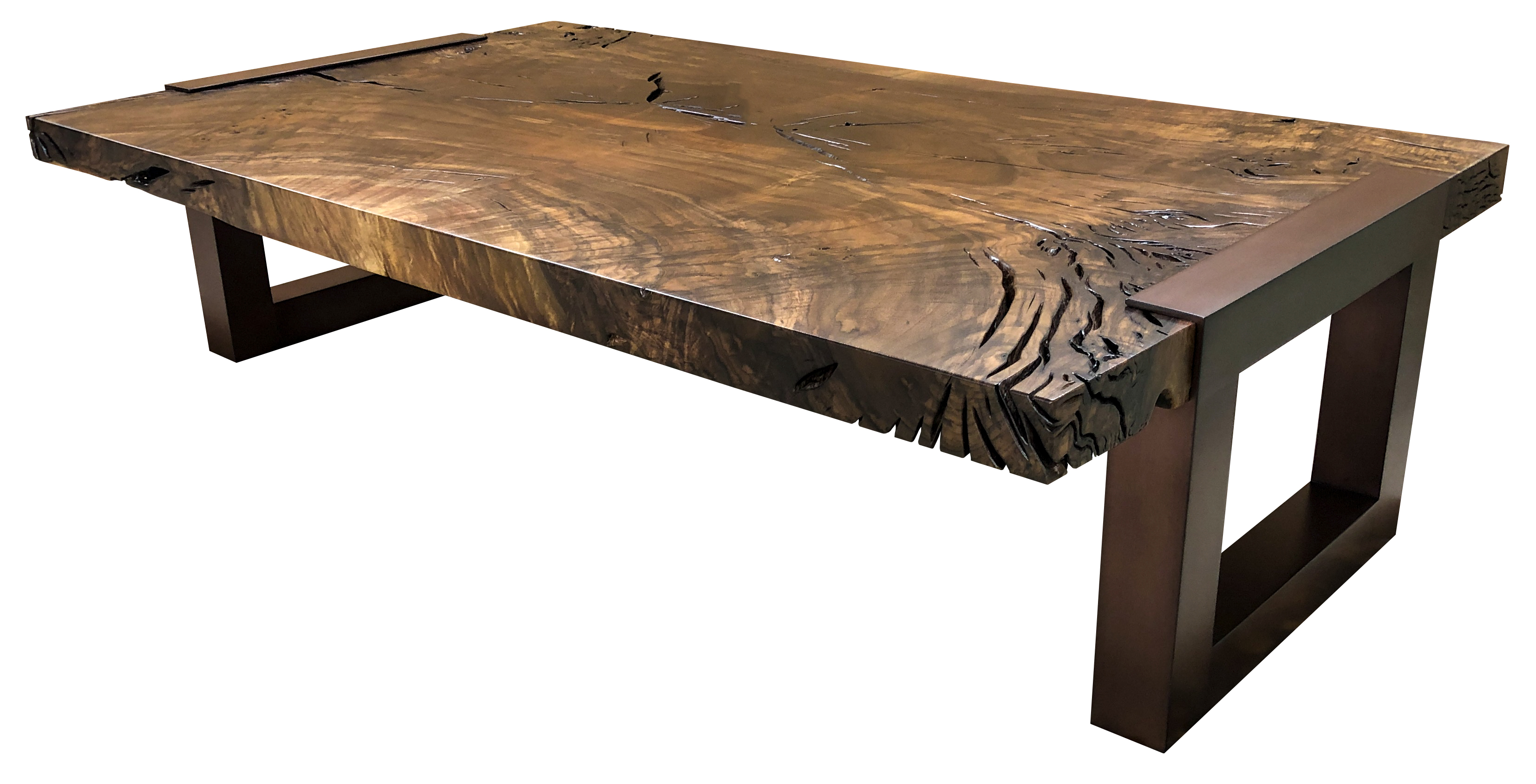 A versatile and contemporary design featuring a reclaimed walnut wood top clasped by clean, architectural steel supports. Adapts beautifully to any size or as a bench. Also available with a solid spruce top.