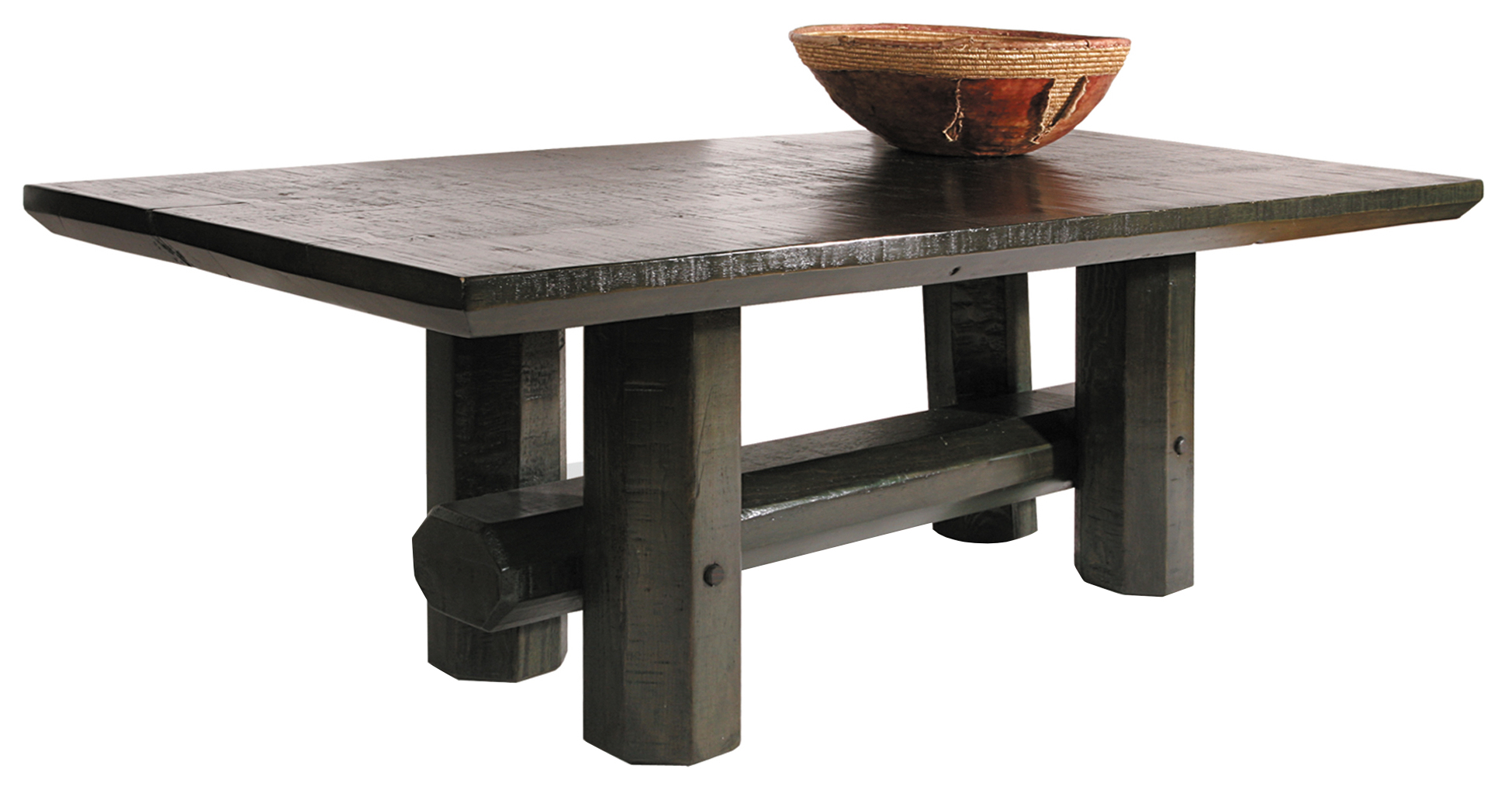 A pedestal-based dining table of solid, octagonal shaped legs and stretchers supporting a bevel edged, hand-cut, solid- planked spruce top. Also available in a round version. Any size, any MLI finish.